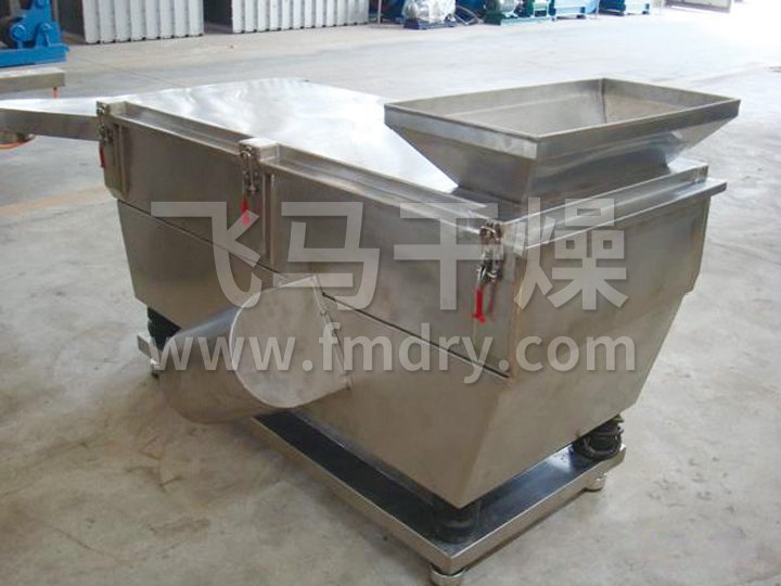 該機(jī)是由進(jìn)出料口篩網(wǎng)篩箱、振動(dòng)源及減震器三大部件構(gòu)成。機(jī)座與篩箱連接有4-6組軟橡膠減震器上下固定,開(kāi)機(jī)即產(chǎn)生離心力,振幅有偏心塊、減震器對(duì)應(yīng)控制,從而達(dá)到需要的工作性能,使物料有一個(gè)拋震和松動(dòng)的過(guò)篩過(guò)程。廣泛適用于制藥、食品、化工、冶金、電子等行業(yè)篩選的理想設(shè)備。